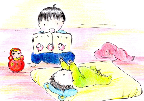 でも、そんな私の気持ちを知ってか知らずか、お兄ちゃんが弟に簡単な赤ちゃんの絵本を読んであげているではないですか!