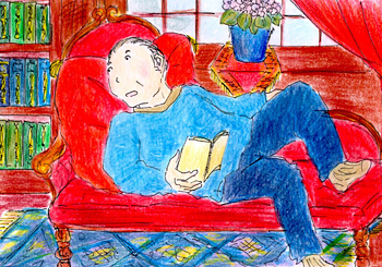 私は、外国のどこかの大きなお屋敷の豪華絢爛たるロビーの気持ちの良い大きなソファーに一冊の書物を手にして一人で座っている。入口とその反対側のドア部分を除く全ての壁面は天井まで造り付けの書棚で覆われており、そこには革表紙の書物がぎっしりと詰まっている。天井にはフレスコ画が描かれている。